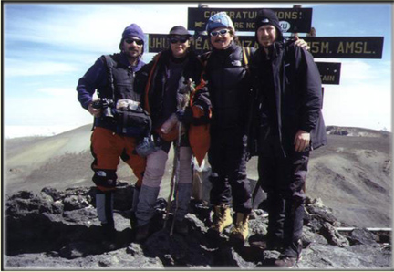 Rolling upright, arms-out over the rocks; giddily singing songs top-o-the-lungs; releasing such a feeling of sky-high happiness and deep satisfaction - one of the most magical very-much-in-yet-out-of-body days on this Earth! I recall the Kalahari Bushman saying: "There is a dream dreaming us." And Kilimanjaro: "Mountain of Greatness" now has four new Dreamers forever in its hold. . . "